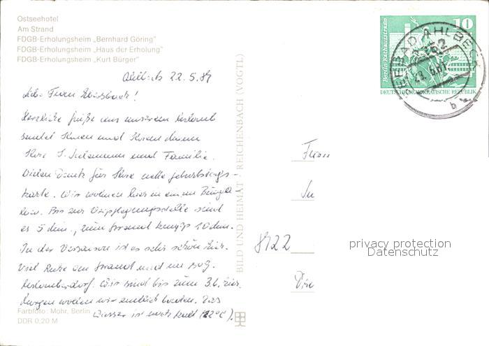 72373271 alte Postkarte Ahlbeck Ostseebad Erholungsheim Bernhard Goering Haus der Erholung Kurt Buerger postalisch gelaufen Erhaltung siehe scans KatCode: 11110013059112