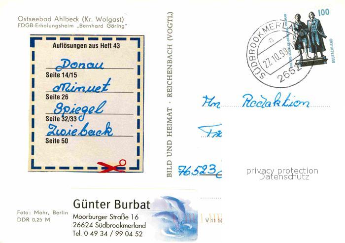 72916438 alte Postkarte Ahlbeck Ostseebad FDGB Erholungsheim Bernhard Goering postalisch gelaufen Erhaltung siehe scans [WerneD78] KatCode: 11110013059112
