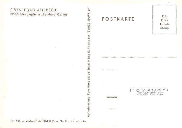 72728580 Ahlbeck Ostseebad FDGB Erholungsheim Bernhard Goering Handabzug postalisch nicht gelaufen Erhaltung siehe scans [FriedD77] KatCode: 11110013059112