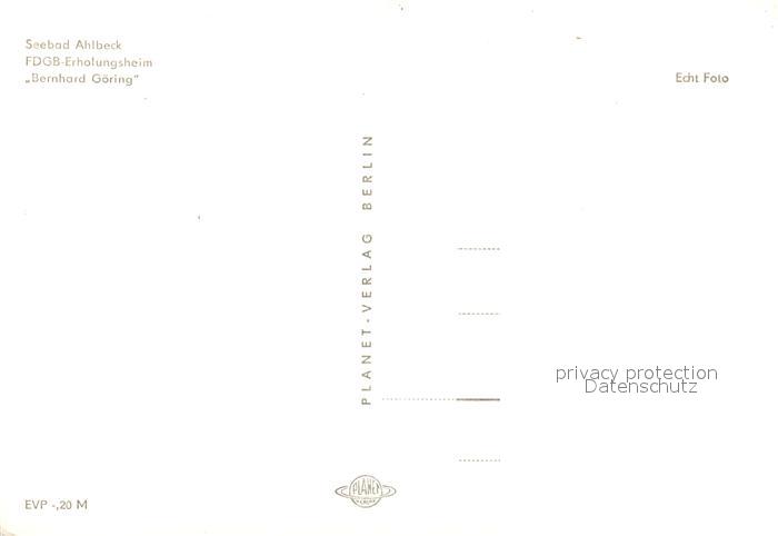 73099870 Ahlbeck Ostseebad FDGB Erholungsheim Bernhard Goering postalisch nicht gelaufen Erhaltung siehe scans [KathaD81] KatCode: 11110013059112