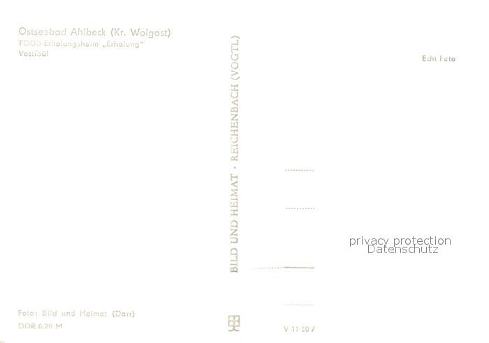 73544163 Ahlbeck Ostseebad FDGB Erholungsheim Erholung Vestibuel postalisch nicht gelaufen Erhaltung siehe scans [FriedD77] KatCode: 11110013059112