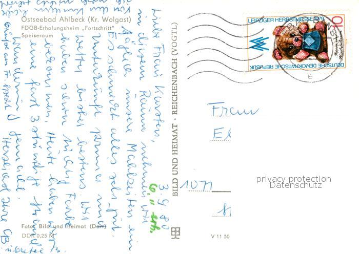73210244 alte Postkarte Ahlbeck Ostseebad FDGB Erholungsheim Fortschritt Speiseraum postalisch gelaufen Erhaltung siehe scans [FriedD77] KatCode: 11110013059112