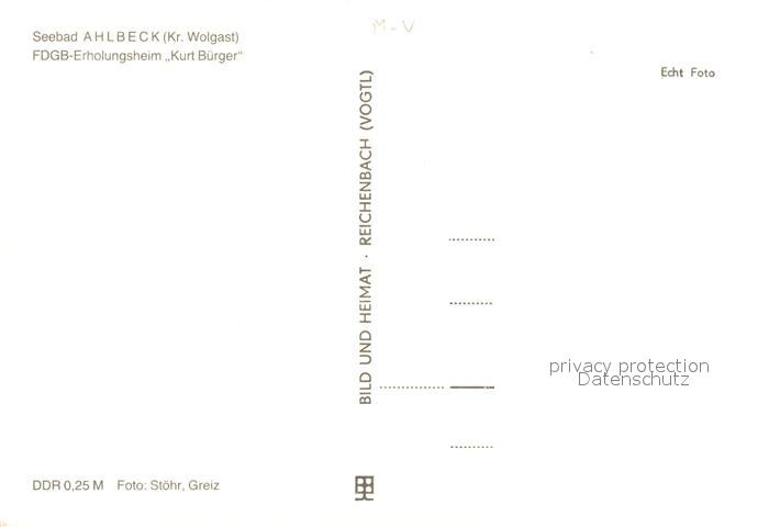 73045506 Ahlbeck Ostseebad FDGB Erholungsheim Kurt Buerger postalisch nicht gelaufen Erhaltung siehe scans [KathaD81] KatCode: 11110013059112