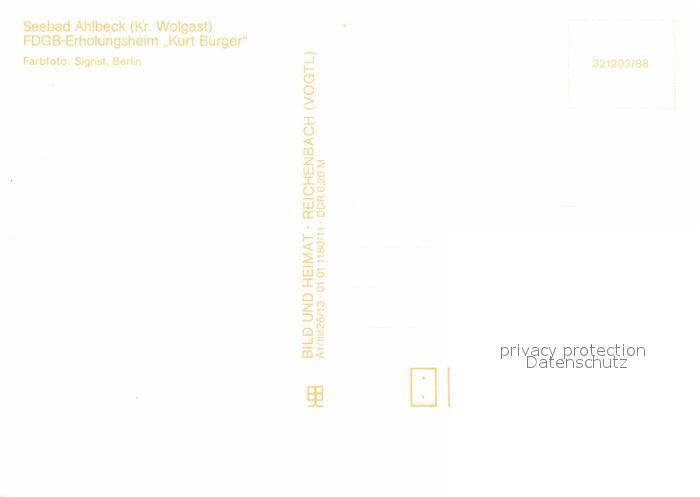 72681251 Ahlbeck Ostseebad FDGB Erholungsheim Kurt Buerger postalisch nicht gelaufen Erhaltung siehe scans [WerneD78] KatCode: 11110013059112
