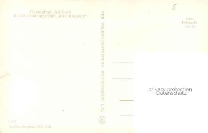73084354 Ahlbeck Ostseebad FDGB Erholungsheim Kurt Buerger I postalisch nicht gelaufen Erhaltung siehe scans [FriedD77] KatCode: 11110013059112