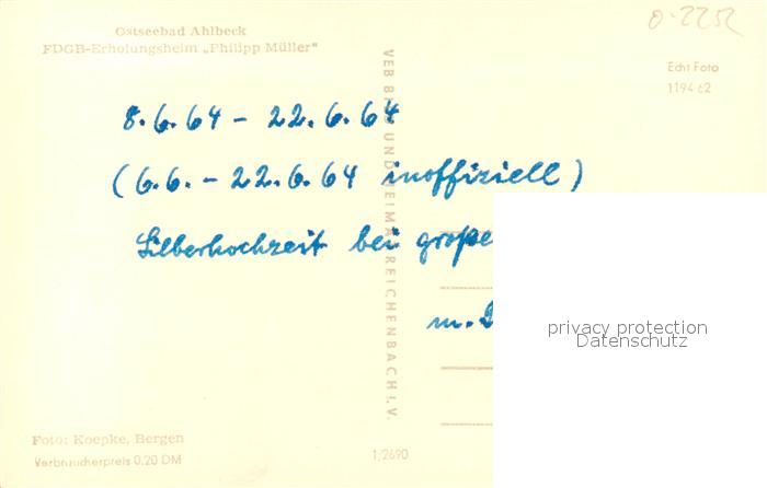 43495441 Ahlbeck Ostseebad FDGB Erholungsheim Philipp Mueller postalisch nicht gelaufen Erhaltung siehe scans [FriedD77] KatCode: 11110013059112
