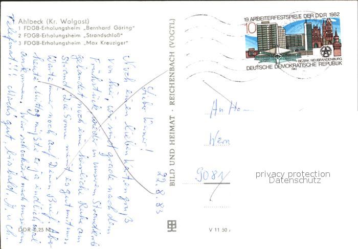 72343566 alte Postkarte Ahlbeck Ostseebad FDGB Erholungsheime Strand Moewen postalisch gelaufen Erhaltung siehe scans KatCode: 11110013059112