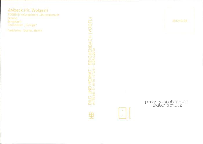 72314832 Ahlbeck Ostseebad FDGB Heim Strandschloss Strand Stranduhr Ferienheim Frithjof postalisch nicht gelaufen Erhaltung siehe scans KatCode: 11110013059112