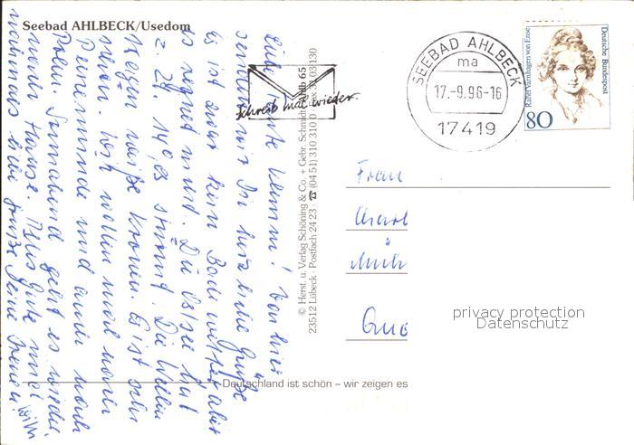 72336967 alte Postkarte Ahlbeck Ostseebad Fischkutter Seebruecke Restaurant Windsurfen Fliegeraufnahme postalisch gelaufen Erhaltung siehe scans KatCode: 11110013059112