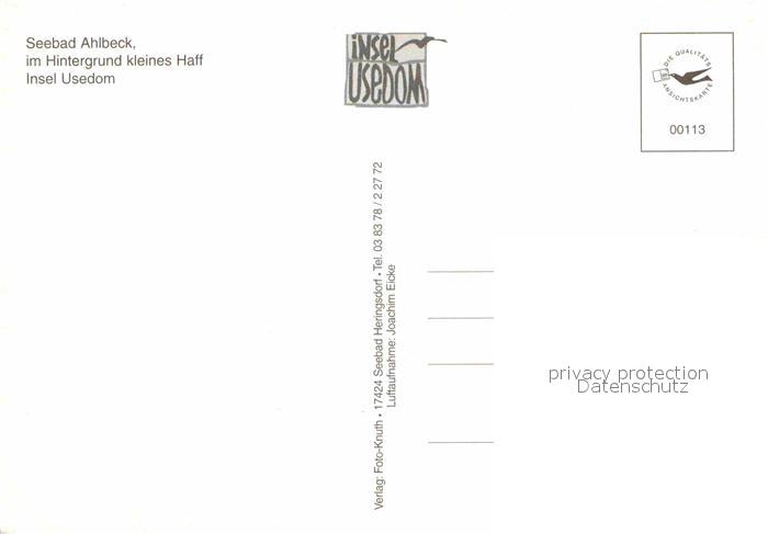 72837611 Ahlbeck Ostseebad Fliegeraufnahme Haff Insel Usedom postalisch nicht gelaufen Erhaltung siehe scans [PaolaD17] KatCode: 11110013059112