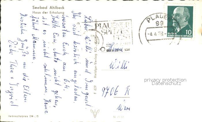 72297068 alte Postkarte Ahlbeck Ostseebad Haus der Erholung postalisch gelaufen Erhaltung siehe scans KatCode: 11110013059112