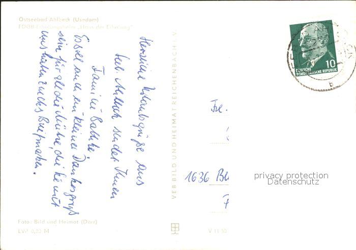 71924726 alte Postkarte Ahlbeck Ostseebad Haus der Erholung postalisch gelaufen Erhaltung siehe scans KatCode: 11110013059112