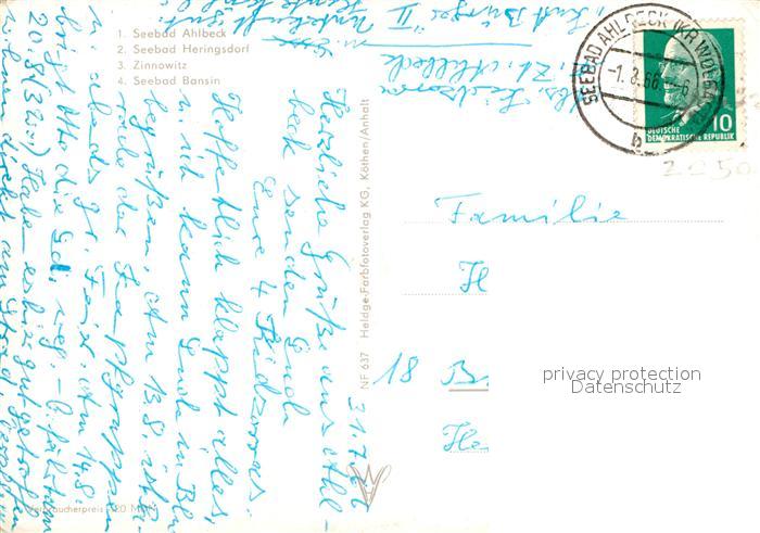 72948650 alte Postkarte Ahlbeck Ostseebad Heringsdorf Zinnowitz Bansin postalisch gelaufen Erhaltung siehe scans [NatalD47] KatCode: 11110013059112