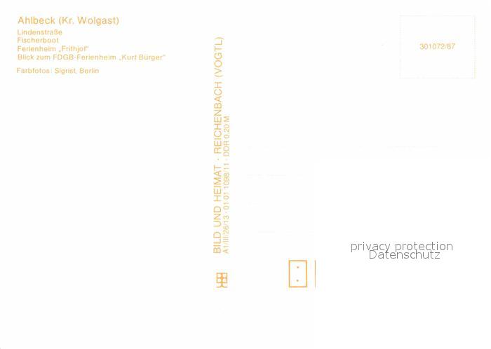 72639118 Ahlbeck Ostseebad Lindenstrasse Fischerboot Ferienheim Frithjof FDGB Ferienheim Kurt Buerger postalisch nicht gelaufen Erhaltung siehe scans [WerneD78] KatCode: 11110013059112