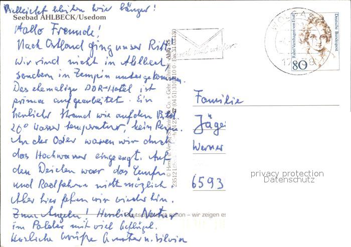 72457555 alte Postkarte Ahlbeck Ostseebad Luftaufnahme postalisch gelaufen Erhaltung siehe scans KatCode: 11110013059112