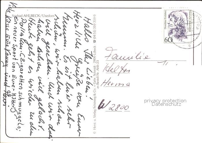72336963 alte Postkarte Ahlbeck Ostseebad Moewe Strand Seebruecke Fischkutter Ortspartie Park Promenade postalisch gelaufen Erhaltung siehe scans KatCode: 11110013059112