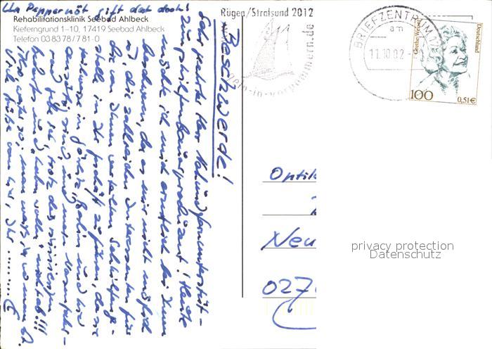 72337254 alte Postkarte Ahlbeck Ostseebad Rehabilitationsklinik Fliegeraufnahme postalisch gelaufen Erhaltung siehe scans KatCode: 11110013059112