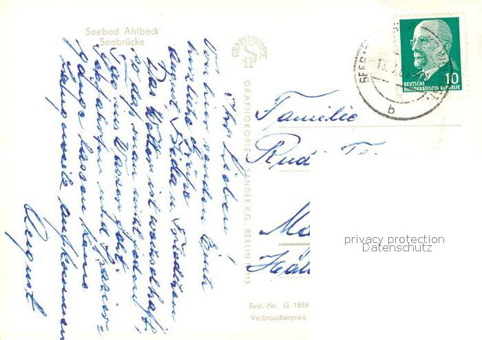 73031771 alte Postkarte Ahlbeck Ostseebad Seebruecke postalisch gelaufen Erhaltung siehe scans [KathaD81] KatCode: 11110013059112