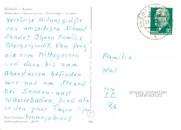72628623 alte Postkarte Ahlbeck Ostseebad Seebruecke postalisch gelaufen Erhaltung siehe scans [WerneD78] KatCode: 11110013059112