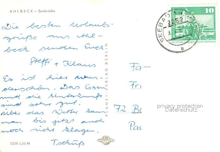 73139283 alte Postkarte Ahlbeck Ostseebad Seebruecke postalisch gelaufen Erhaltung siehe scans [NatalD47] KatCode: 11110013059112