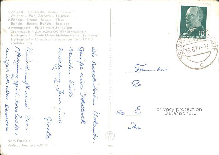 72557456 alte Postkarte Ahlbeck Ostseebad Seebruecke Bansin Strand Heringsdorf FDGB Heim postalisch gelaufen Erhaltung siehe scans [KathaD79] KatCode: 11110013059112