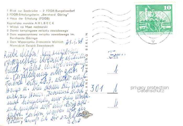 73100557 alte Postkarte Ahlbeck Ostseebad Seebruecke FDGB Bungalowdorf Erholungsheime postalisch gelaufen Erhaltung siehe scans [KathaD81] KatCode: 11110013059112