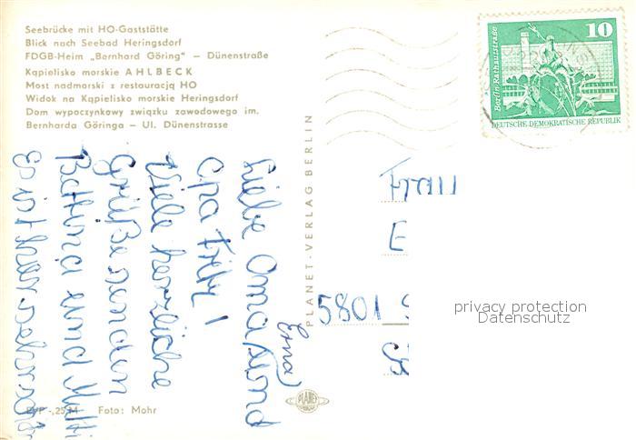 73049633 alte Postkarte Ahlbeck Ostseebad Seebruecke Gaststaette Heim Bernhard Goering Duenenstrasse postalisch gelaufen Erhaltung siehe scans [PaolaD17] KatCode: 11110013059112
