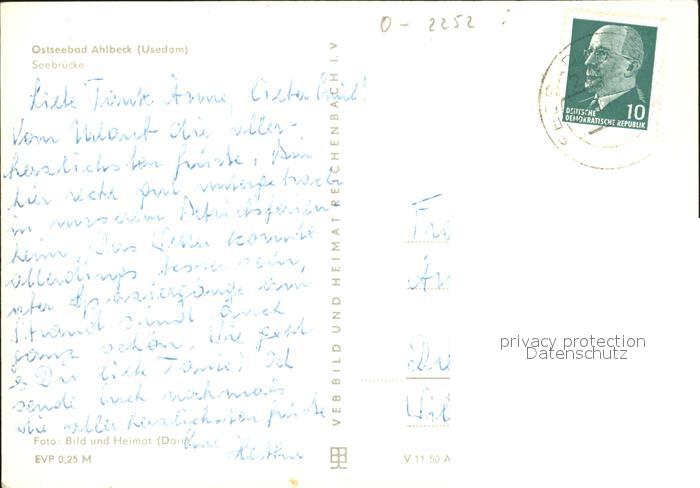 72080199 alte Postkarte Ahlbeck Ostseebad Seebruecke Strand postalisch gelaufen Erhaltung siehe scans KatCode: 11110013059112