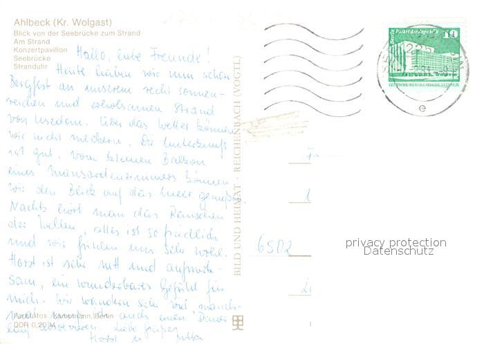 73026264 alte Postkarte Ahlbeck Ostseebad Seebruecke Strand Konzertpavillon Stranduhr postalisch gelaufen Erhaltung siehe scans [KathaD81] KatCode: 11110013059112