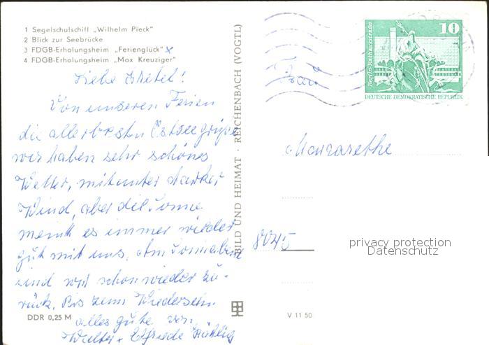 72357339 alte Postkarte Ahlbeck Ostseebad Segelschulschiff Wilhelm Pieck Erholungsheim Ferienglueck Max Kreuziger postalisch gelaufen Erhaltung siehe scans KatCode: 11110013059112