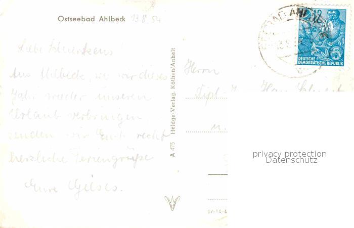 72640564 alte Postkarte Ahlbeck Ostseebad Strand postalisch gelaufen Erhaltung siehe scans [NatalD47] KatCode: 11110013059112