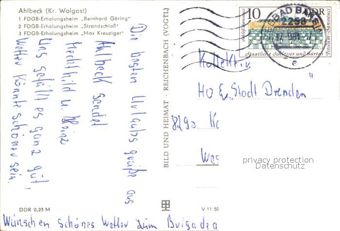 72543699 alte Postkarte Ahlbeck Ostseebad Strand Erholungsheime postalisch gelaufen Erhaltung siehe scans [LiesaD40 kv019box] KatCode: 11110013059112