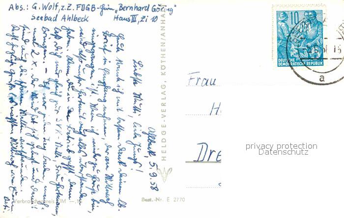 72639809 alte Postkarte Ahlbeck Ostseebad Strand Konzerthalle Seebruecke postalisch gelaufen Erhaltung siehe scans [KathaD79] KatCode: 11110013059112