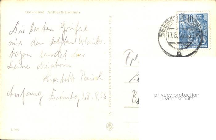 72388050 alte Postkarte Ahlbeck Ostseebad Strand mit Booten postalisch gelaufen Erhaltung siehe scans KatCode: 11110013059112