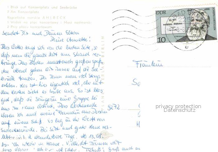 72739877 alte Postkarte Ahlbeck Ostseebad Strand Seebruecke postalisch gelaufen Erhaltung siehe scans [LiesaD40] KatCode: 11110013059112