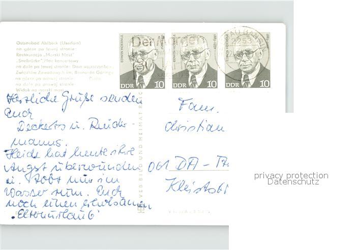 71900311 alte Postkarte Ahlbeck Ostseebad Strand Seebruecke Konzertmuschel postalisch gelaufen Erhaltung siehe scans KatCode: 11110013059112