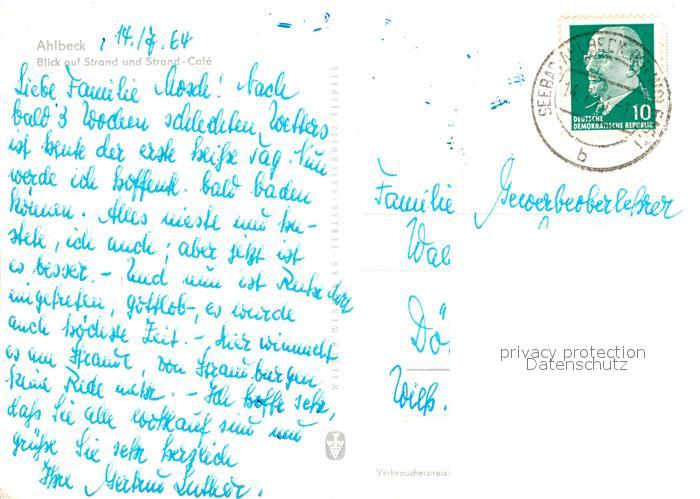 72991207 alte Postkarte Ahlbeck Ostseebad Strand Strandcafe Seebruecke postalisch gelaufen Erhaltung siehe scans [FriedD77] KatCode: 11110013059112