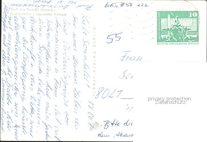 72357223 alte Postkarte Ahlbeck Ostseebad Strand Uhr Anlegestelle postalisch gelaufen Erhaltung siehe scans KatCode: 11110013059112