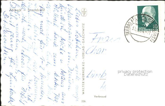 72395595 alte Postkarte Ahlbeck Ostseebad Strandcafe postalisch gelaufen Erhaltung siehe scans KatCode: 11110013059112