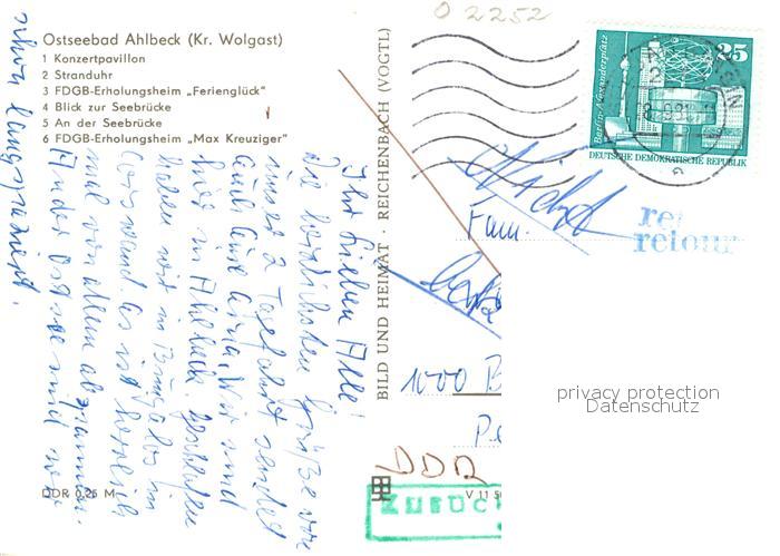 72941259 alte Postkarte Ahlbeck Ostseebad Stranduhr Erholungsheim Ferienglueck Max Kreuziger postalisch gelaufen Erhaltung siehe scans [NatalD47] KatCode: 11110013059112