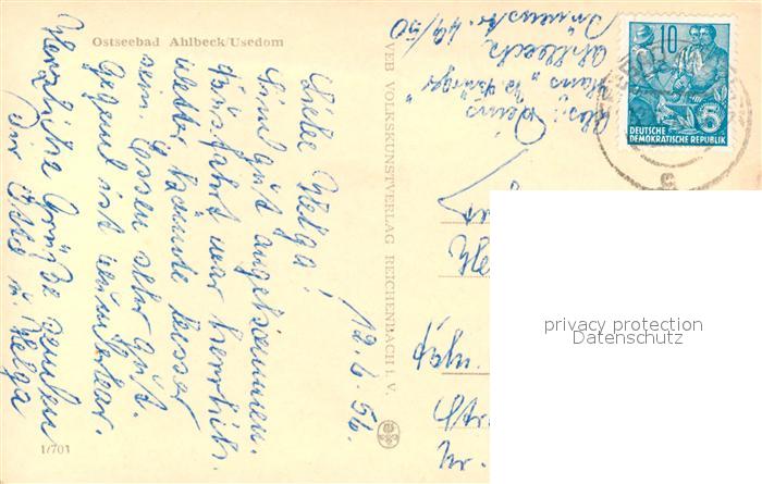 43496329 alte Postkarte Ahlbeck Ostseebad Stranduhr Seebruecke postalisch gelaufen Erhaltung siehe scans [FriedD77] KatCode: 11110013059112