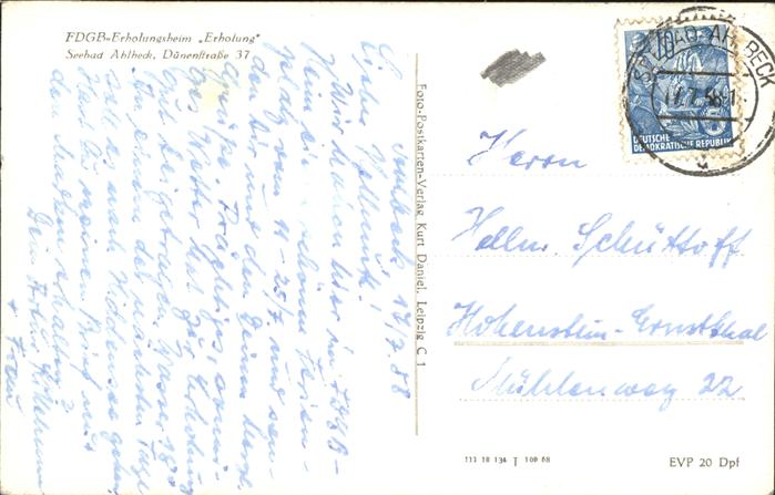 41239491 Ahlbeck Uecker-Randow FDGB Erholungsheim Erholung Seebad KatCode 11110013062001