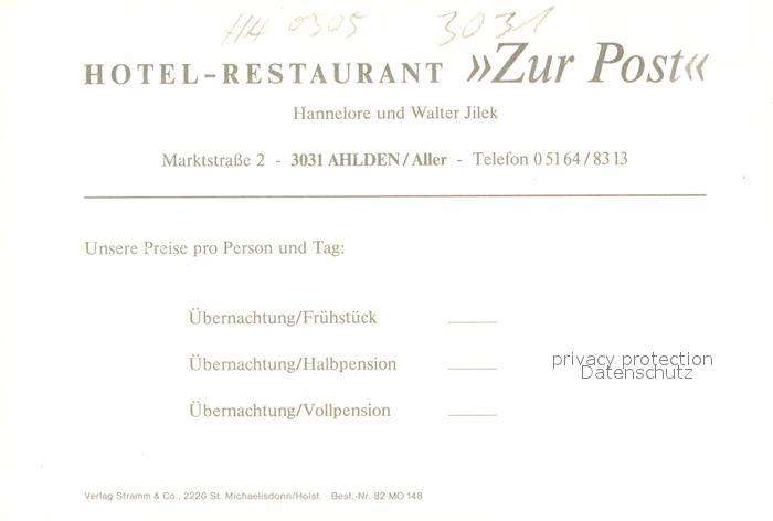 73323240 Ahlden Hotel Restaurant Zur Post postalisch nicht gelaufen Werbekarte (keine Postkarte) Erhaltung siehe scans [FriedD77] KatCode: 11110003358001