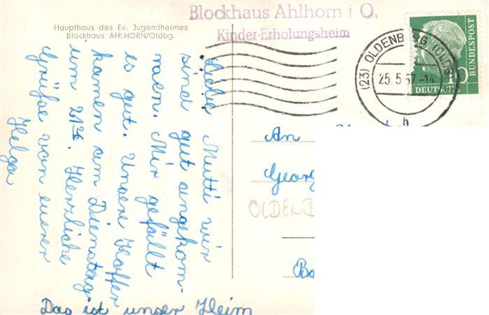 73900079 alte Postkarte Ahlhorn Grossenkneten Haupthaus des Ev. Jugendheimes Blockhaus postalisch gelaufen Erhaltung siehe scans [FriedD77] KatCode: 11110003458007