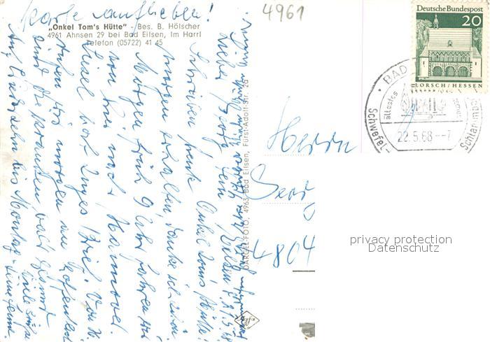 73695064 alte Postkarte Ahnsen Onkel Toms Huette Gastraeume postalisch gelaufen Erhaltung siehe scans [WerneD78] KatCode: 11110003257001