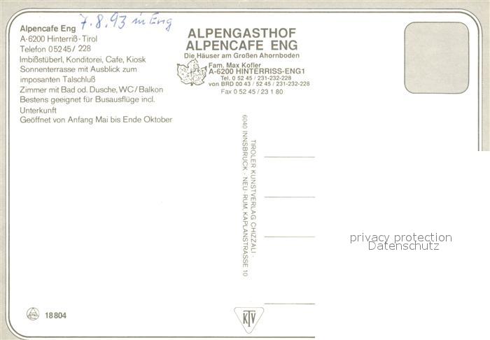 73049050 Ahornboden Alpencafe Eng Speckalm postalisch nicht gelaufen Erhaltung siehe scans [KathaD81] KatCode: 11390
