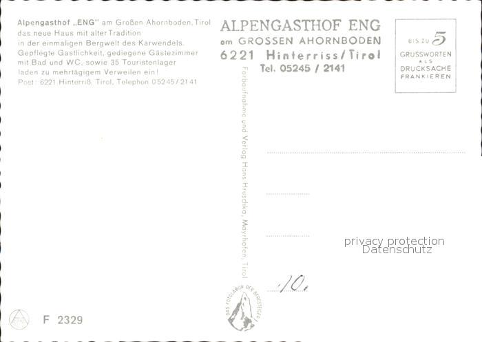 72229422 Ahornboden Alpengasthof Eng postalisch nicht gelaufen Erhaltung siehe scans KatCode: 11390