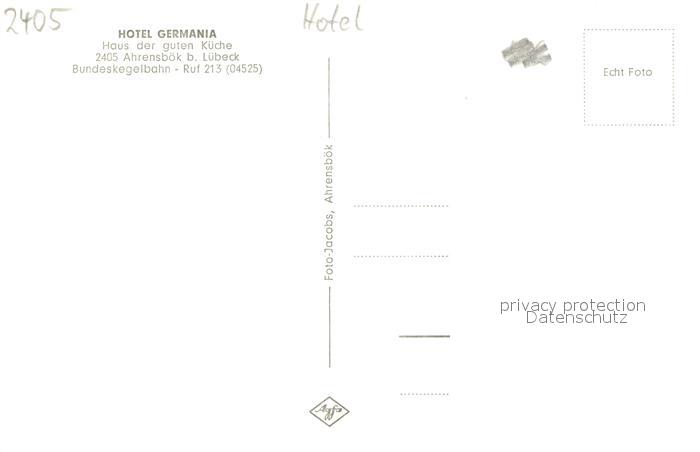 73691962 Ahrensboek Ostholstein Hotel Germania Bundeskegelbahn Wild postalisch nicht gelaufen Erhaltung siehe scans [LiesaD40] KatCode: 11110001055001