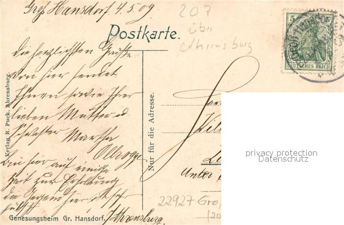 43155557 alte Postkarte Ahrensburg Genesungsheim Hansdorf postalisch gelaufen Erhaltung siehe scans [KathaD81] KatCode: 11110001062001