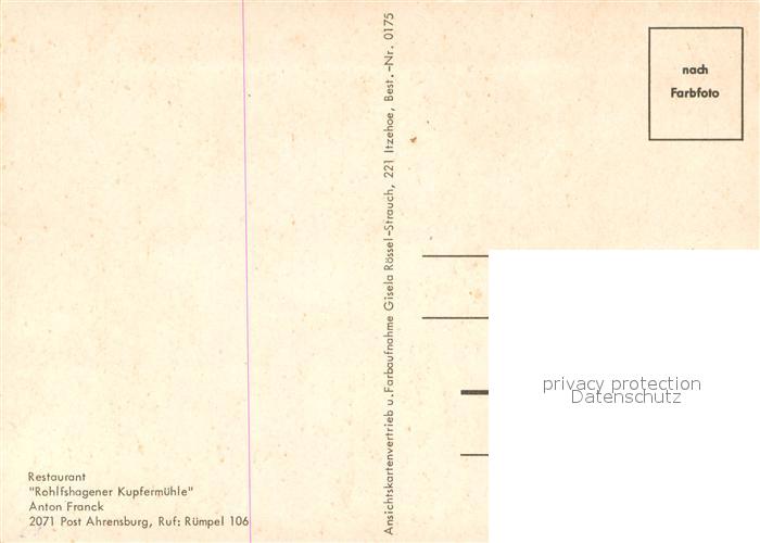 73724629 Ahrensburg Restaurant Rohlfshagener Kupfermuehle Gartenterrasse postalisch nicht gelaufen Erhaltung siehe scans [FriedD77] KatCode: 11110001062001